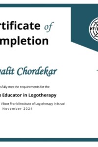 I conduct training in The Introduction to Logotherapy course in India which offers an International Certification from the Viktor Frankl Institute of Logotherapy Israel. It is the first International Certification course in India in Logotherapy.