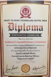 I am a Certified Logotherapist & Trainer affiliated with Viktor Frankl Institute Israel. My other certifications being a Bach Flower Practitioner, Certified by The Edward Bach Institute UK and I also hold a Diploma in Counseling.